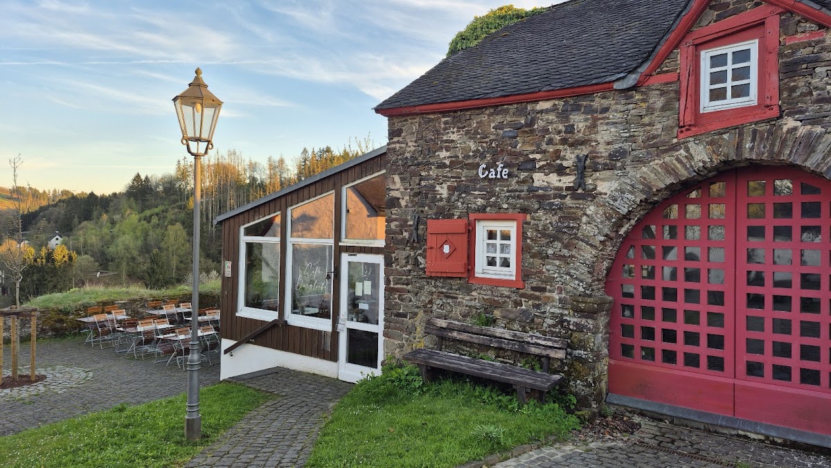 If you find yourself wandering through the picturesque Eifel region of Germany, a visit to Café Burgliebe in Hellenthal is an absolute must. Nestled beside a charming old castle ruin at Zehntweg 11, this delightful café is a gem for those seeking a cozy retreat after a day of adventure.